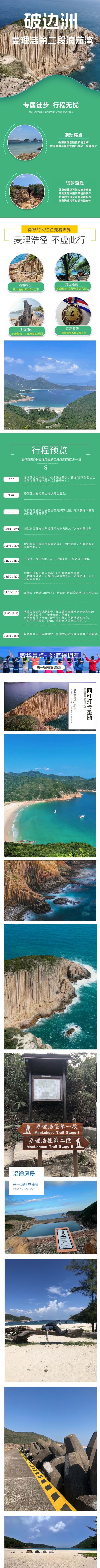 特别备注:6月7月8月9月若徒步当天天气炎热,领队可能安排从郊野公园坐区内小巴进入,节约公路徒步路程8公里左右,节约时间2小时,以此延长破边洲停留拍照时间,延长浪茄湾玩水时间,徒步配速会放缓,以防不适。