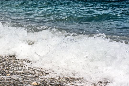 玻璃碎片与沙滩上的沙子、海水相互融合,形成了一种独特的自然景观。海浪不断地拍打着海滩,推动着玻璃碎片,使其在沙滩上不断地滚动、碰撞,发出清脆的声音,仿佛是大自然演奏的一首美妙的乐曲。