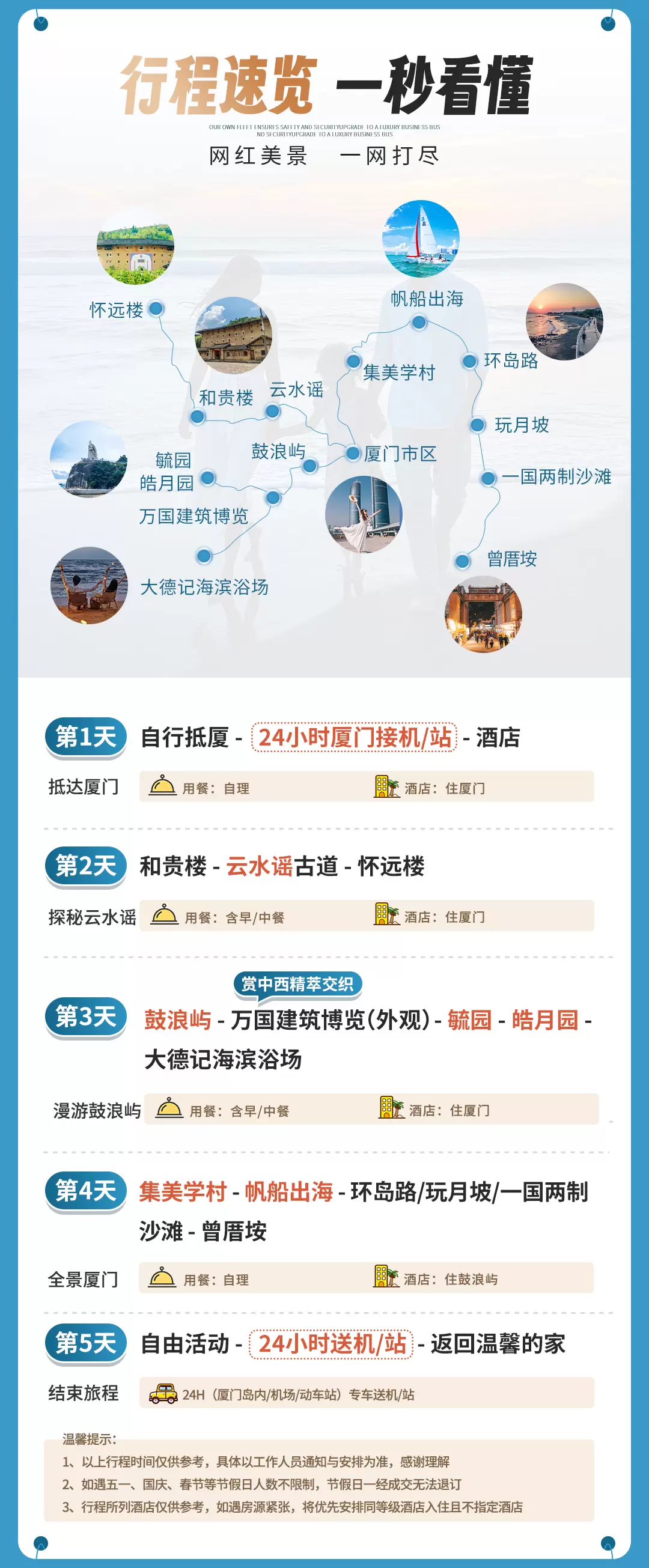 漳州云水谣古镇+厦门老院子景区+鼓浪屿+南普陀寺+集美学村五日游【1晚住鼓浪屿|帆船出海+土楼|一岛倾城】