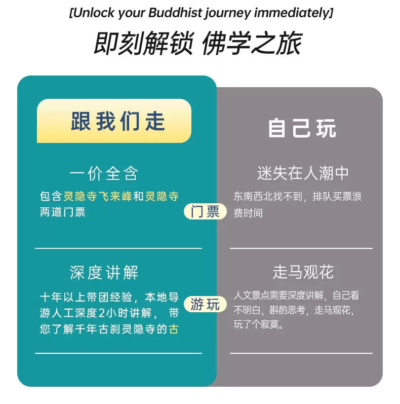 杭州灵隐寺 灵隐飞来峰景区专业讲解半日游【10人品质小团 专业导游深度人工讲解 可选上午下午 包含两道门票】