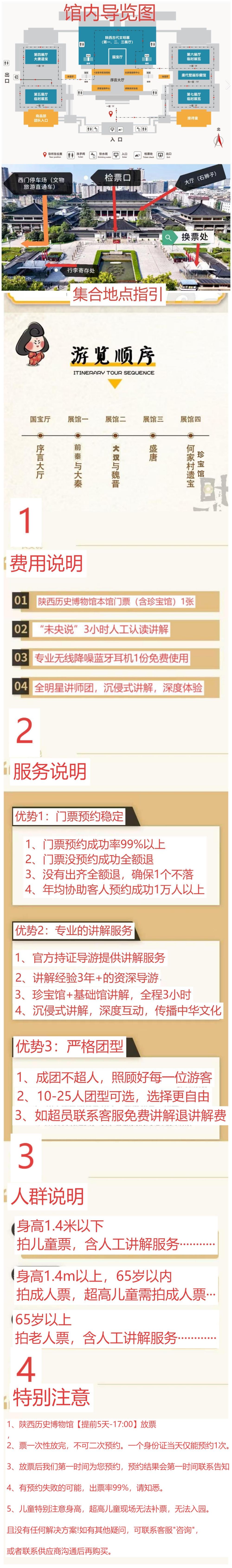 1.陕西历史博物馆为公益性博物馆【门票免费】,默认帮忙预约基础馆门票(含珍宝馆参观),不能保证下单后就有票,有预约不到的可能,出票结果以客服通知为准。