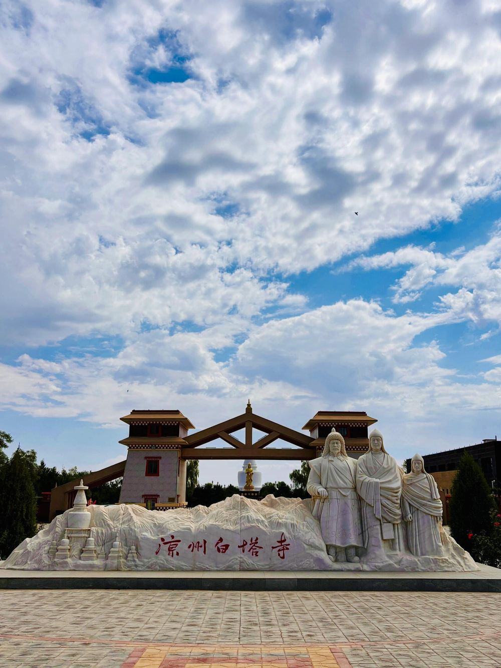 ▲ 【白塔寺】 白塔寺为元代忽必烈(1260年-1295年)时期藏传佛教萨迦派法王赴凉州会谈西藏统一、并达成协议的居所。白塔寺遗址由寺院、塔院、塔林等建筑构成。寺院有围墙,东西420米、南北430米,墙基宽3.1米,边长26.75米、残高5.1米。始建于西夏的凉州白塔寺是甘肃古代藏传佛教寺院,萨迦班智达在白塔寺驻寺五年,讲经弘法,同当地各族群众建立了密切关系。这位宗教领袖一二五一年在此圆寂,同他会谈的蒙古汗国皇子阔端按照藏式佛塔形式,修建了一座高四十二点七米的灵骨塔,周围环绕着九十九座小塔。