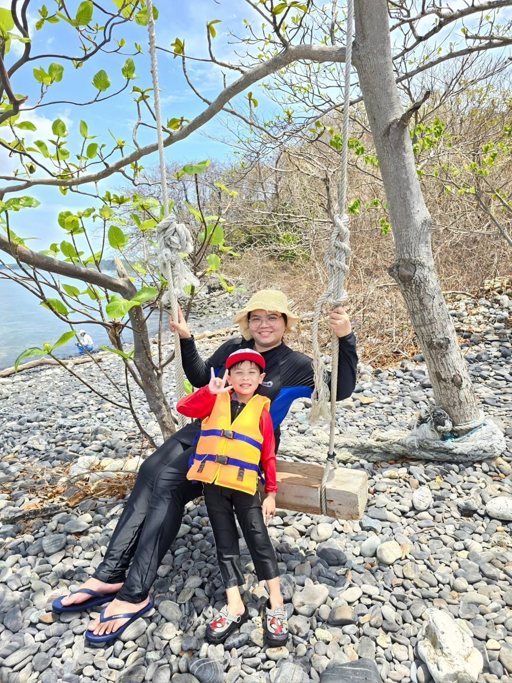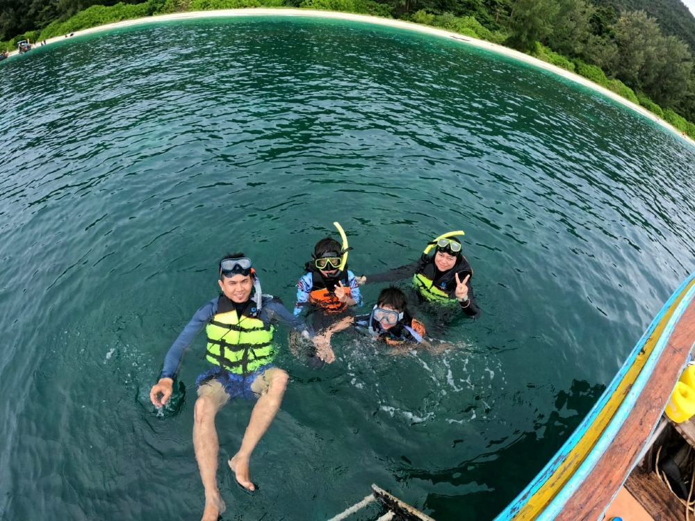 一天的行程从贾邦潜水点开始,那里粉紫色的软珊瑚构成了一座闪闪发光的水下花园,海马和裸鳃类动物在其中穿梭。之后前往欣岩岛,这座岛屿遍布闪亮的黑色石头,在碧绿的海水中熠熠生辉。随后前往扬岛,这里以清澈见底的珊瑚礁和五彩缤纷的鱼群而闻名,是浮潜的理想之地。