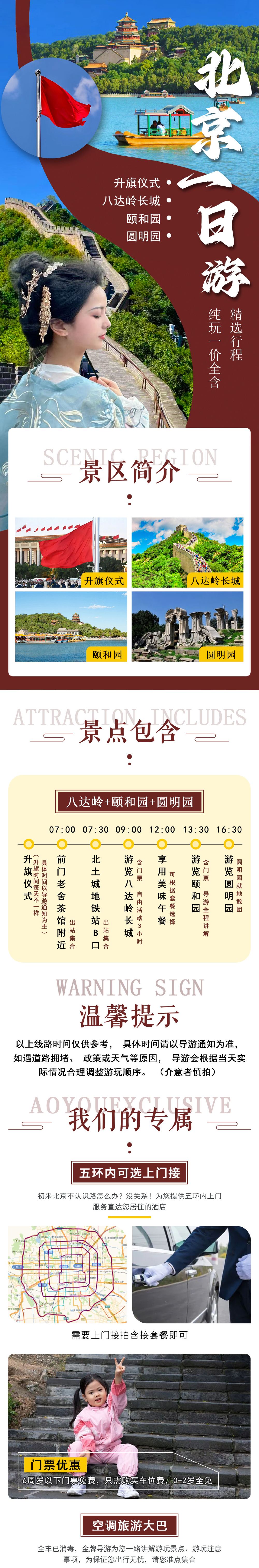 天安门广场+升旗仪式+八达岭长城+颐和园+圆明园一日活动【【品质保障】真正,无任何购物店,专业导游带队,看庄严的升旗仪式,登八达岭长城做“好汉”!】