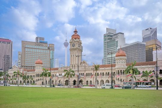 ▲ 独立广场 站在1957年马来西亚国旗**升起的历史之地。这片广阔的绿色草坪被传统建筑和巨型旗杆环绕,是国家自由与自豪的象征中心。