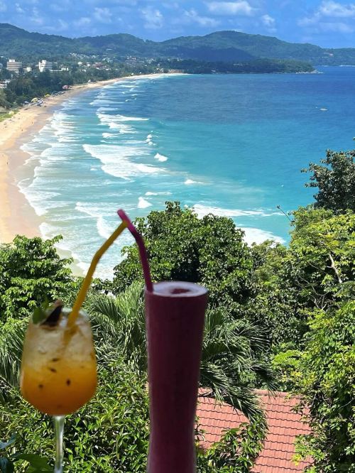 站在观景台上,一眼望去,卡塔海滩、卡塔小海滩、卡伦海滩像三道蓝色丝带,湛蓝的海水在阳光下泛着光,沙滩洁白如玉,宛如一幅立体的风景画。