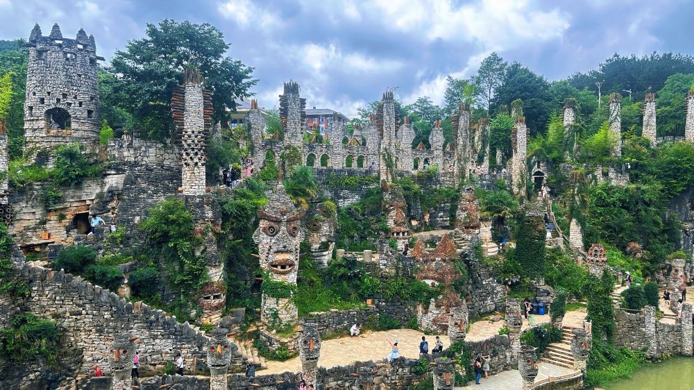 ▲ 艺术传奇版:一位艺术家,二十年心血,铸就三百亩奇幻石头城堡。花溪夜郎谷是宋培伦先生凭借对消失的夜郎古国的想象,用石头、陶片等自然材料打造的生态艺术殿堂。 视觉景观版:踏入峡谷,映入眼帘的是上百尊表情各异、充满张力的巨石脸谱,它们沿喀斯特河谷两岸分布,构成一个神秘而震撼的石头王国。 文化体验版:这里不仅是拍照圣地,更能欣赏到非遗傩戏表演、逛逛艺术家市集,在奇特的艺术氛围中,感受一份原始的文化自信与宁静。