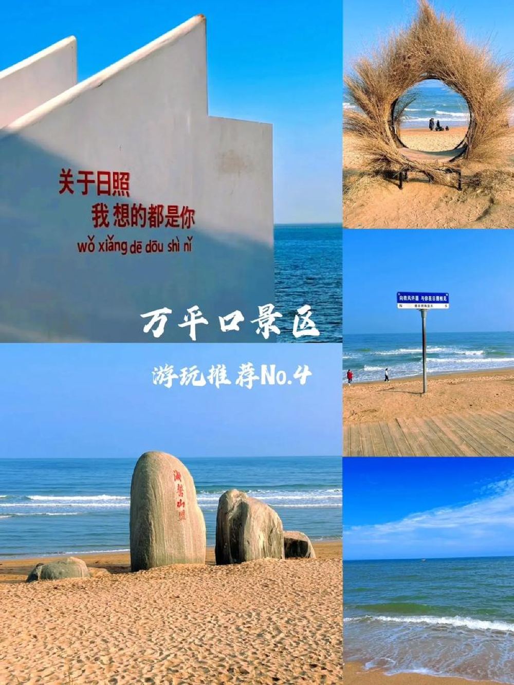 ▲ 来日照,必来万平口。这里是国内少有的4S级沙滩,更是日照人民的海上会客厅,这里沙滩细软,这里海水湛蓝,这里凉风徐徐。再炎热的夏天当你来到这里,光着脚丫,坐在沙滩上,或踩在清澈的海水里,尽情的享受大海的味道