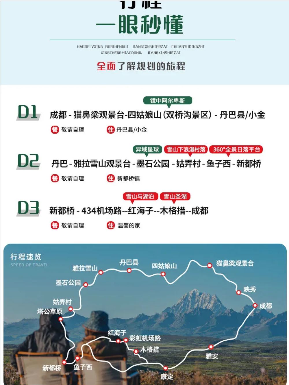 D1:成都--猫鼻梁观景台--四姑娘山·双桥沟--丹巴/小金