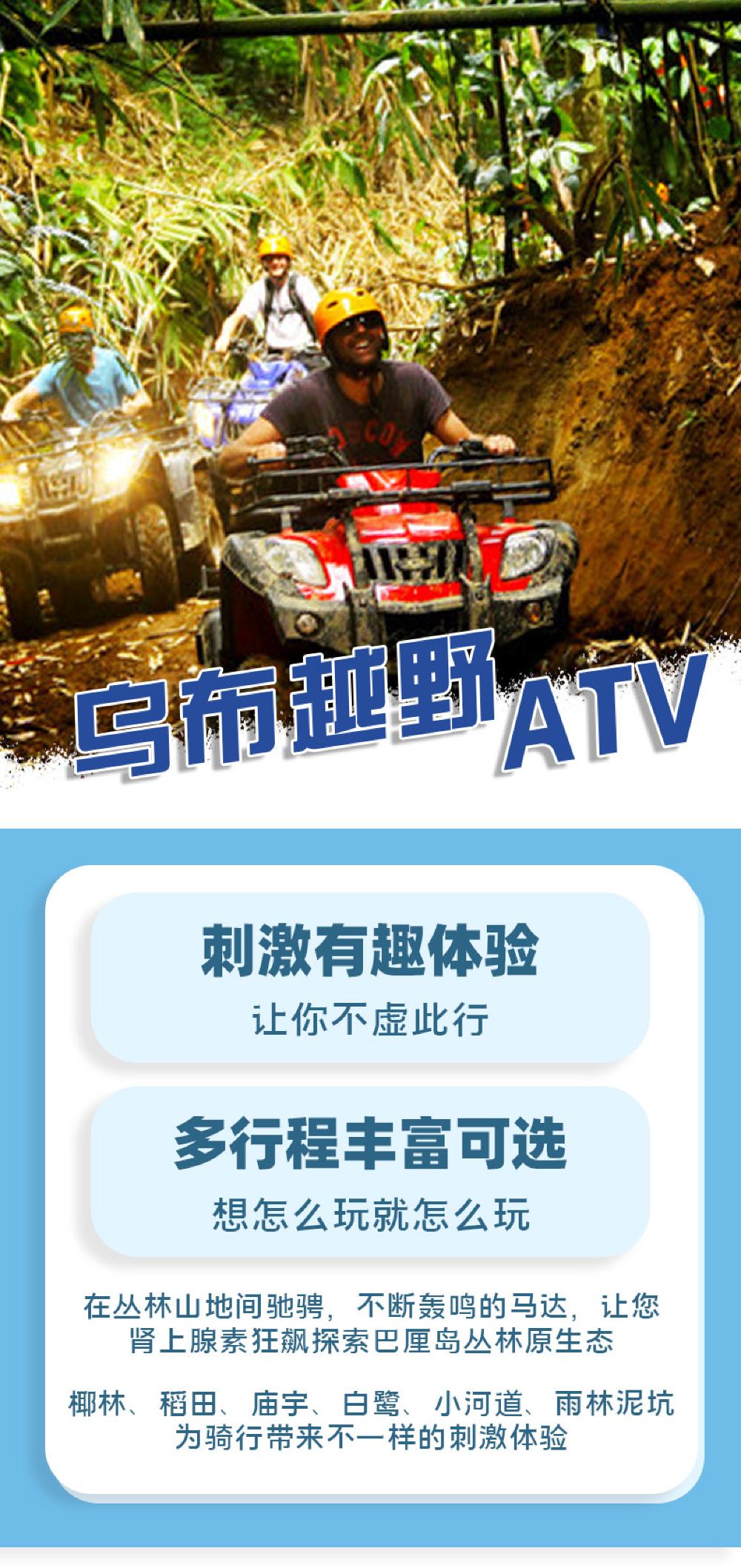 巴厘岛越野ATV体验一日游【乌布TV漂流网红大秋千滑翔伞】【天然屏障和凹凸不平的泥浆坑,体验骑行带来的惊险刺激快】