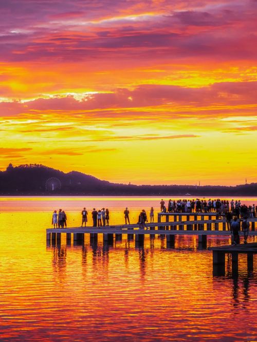 ▲ 武汉凌波门 日出日落,双倍浪漫 •日出奔赴:早起困难户?但当你看到凌波门日出破晓,阳光穿透云层洒在湖面,波光粼粼像碎金 从黑夜到黎明的奔赴,会让你觉得这趟早起值得! •日落沉溺:傍晚来这更松弛~ 橙黄晚霞铺满天空,和室友沿着栈道散步,看夕阳把云朵染成橘子味 晚风轻轻吹,烦恼全消散 ️夏日玩水,快乐加倍