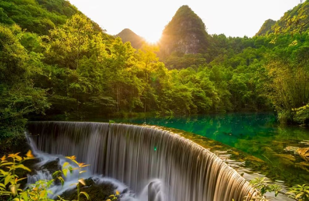 随后游览有绿色喀斯特、水上石林、天然盆景之称的【天星桥景区】, (游览时间约2小时)。这里顽石突兀而起,星罗棋布,一路欣赏喀斯特溶洞奇观[天星洞]、小白龙的[冒水潭]、[水上石林]、[天星桥上桥]、[飞瀑桥]等景观。随后游览美轮美奂的[银链坠潭瀑布],堪称景区柔美瀑布典范。