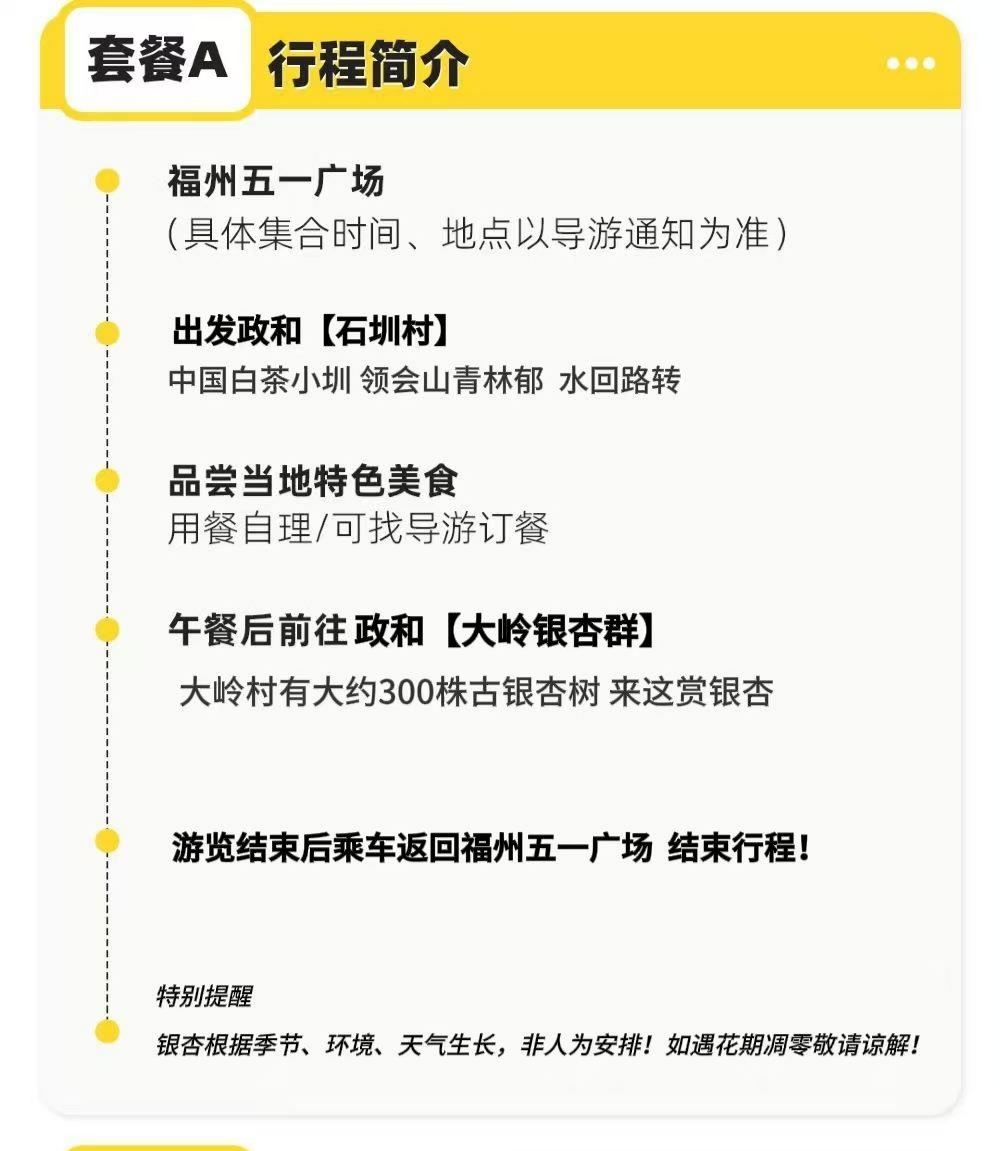 【有“杏”遇见你】政和大岭银杏群、白茶小镇石圳汽车1日游【现仍存树龄过百年的银杏三百余株——大岭村】