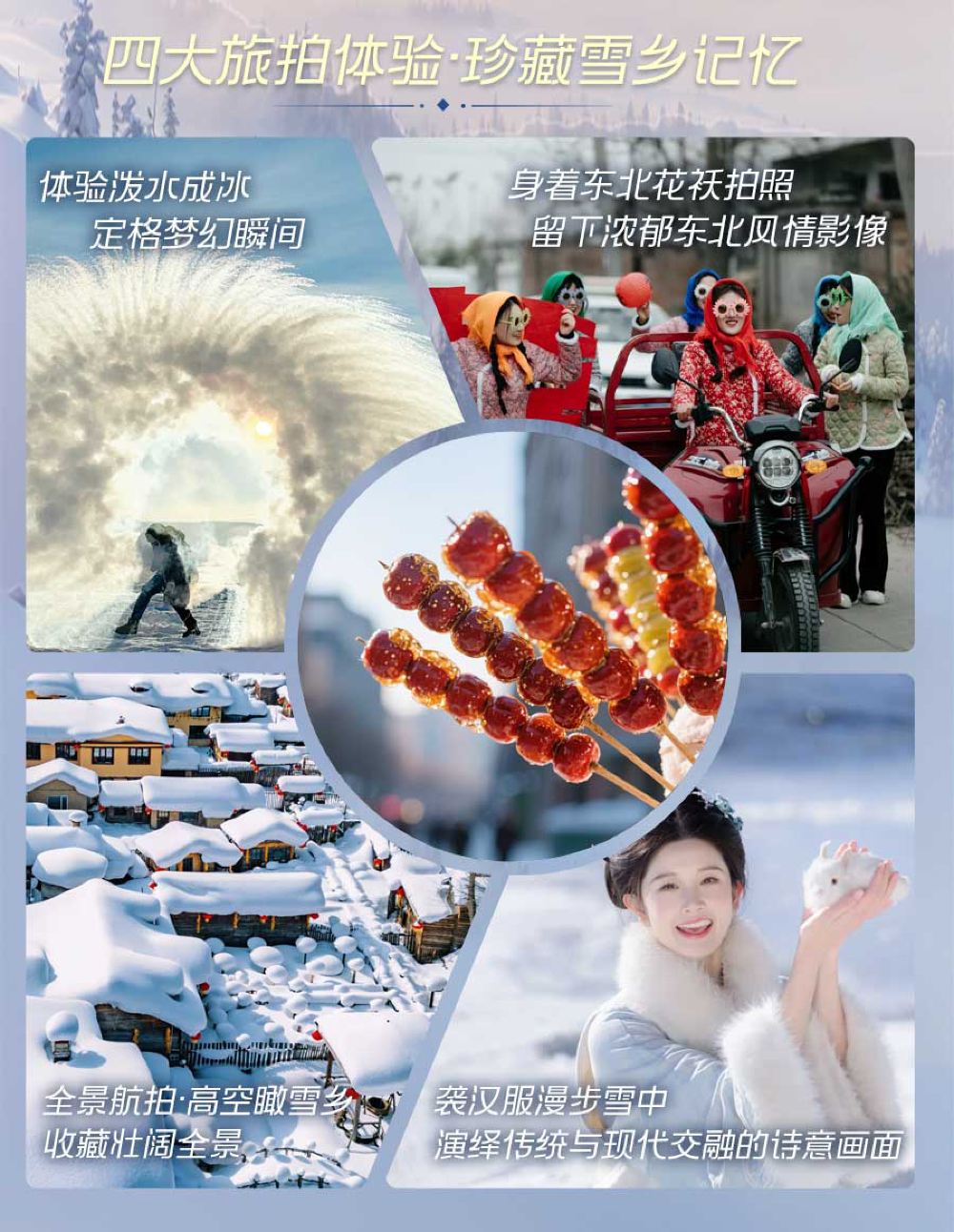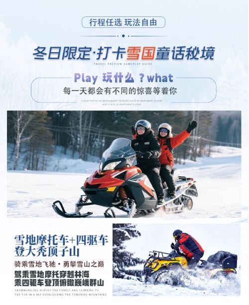 ·务必穿戴加厚羽绒服、防水防滑的雪地靴、保暖帽、围巾及触屏手套。