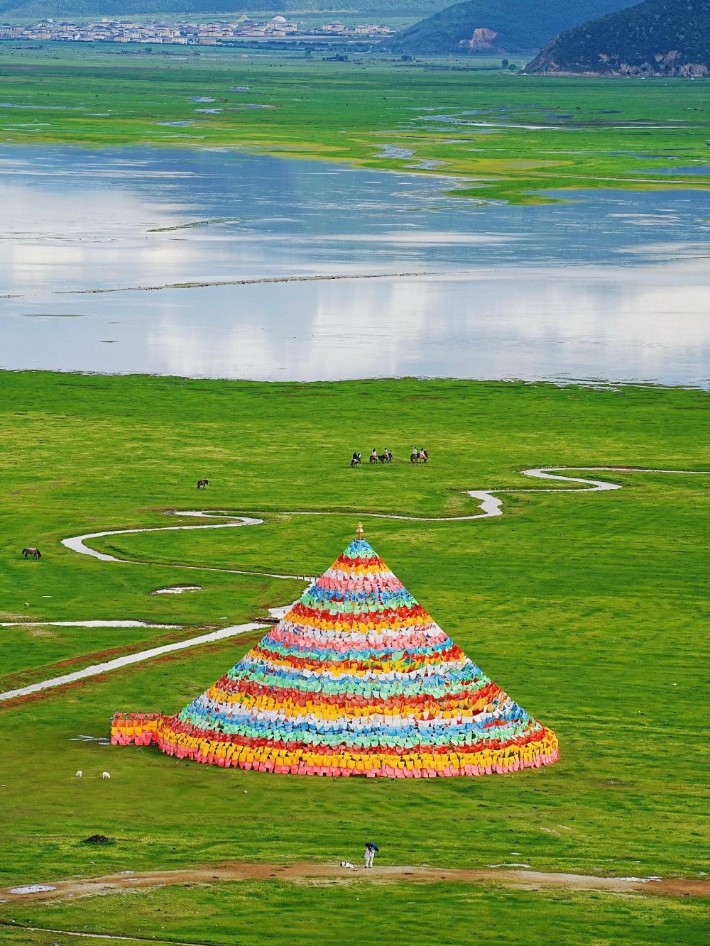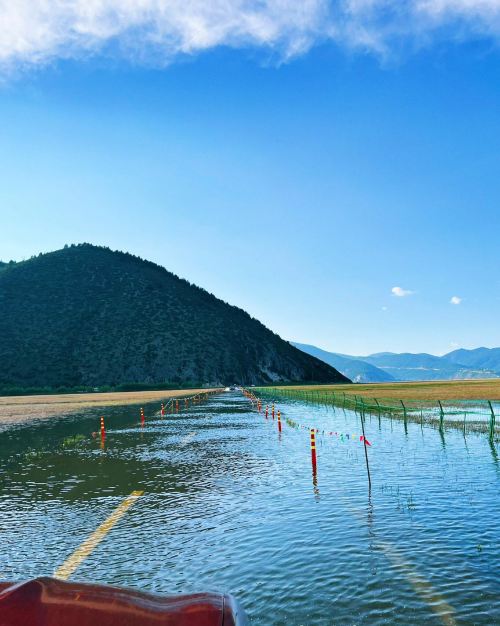 ▲ ▲ 纳帕海环湖路位于迪庆藏族自治州香格里拉市,主要是环绕 纳帕海,沿途可欣赏草原、湖泊、雪山等景观,风景很美。 环湖路比较平坦,没有急弯,路也很宽,可以边骑边玩边拍照。 纳帕海环湖路在 高山 别庄和贡宾马场有一段涉水路段,是香格里拉的网红“水上公路”,在雨季时湖水可蔓延到路上,蓝天白云倒影在水上,犹如天空之境!