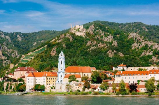 ▲ 第一站是杜恩施泰因,它以其雄伟的城堡遗址而闻名,这座遗址曾是英国狮心王理查德的监狱,从这里可以欣赏到多瑙河谷的壮丽景色。河畔的蓝色教堂也是小镇著名的地标。