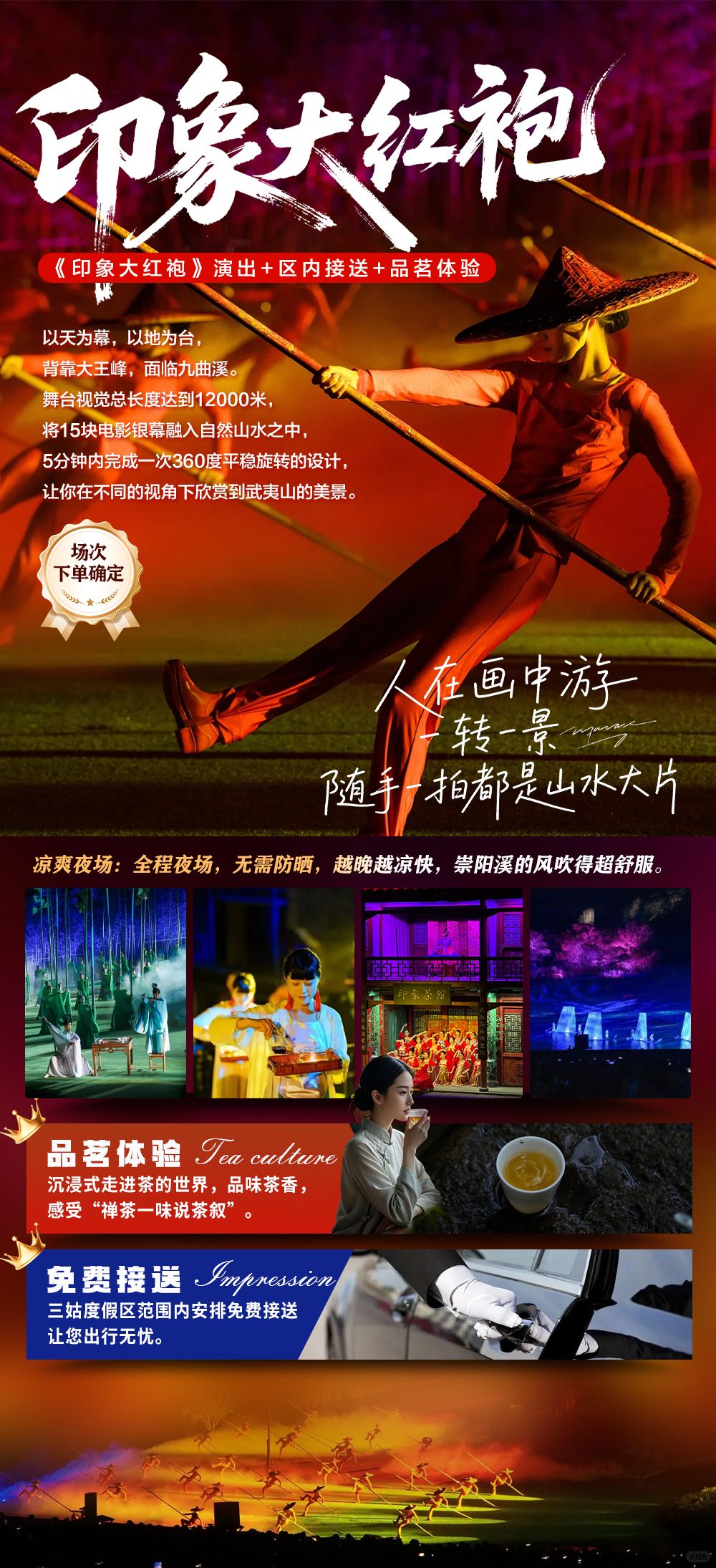 武夷山《印象大红袍》演出+区内接送+品茗体验【场次下单确定】【凉爽夜场:全程夜场,无需防晒,越晚越凉快,崇阳溪的风吹得超舒服.】