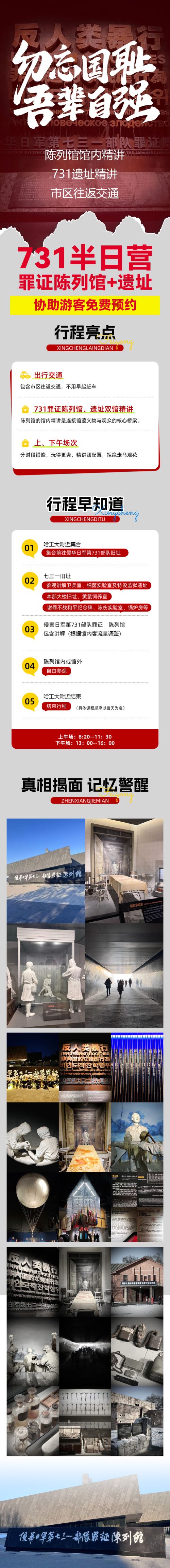 侵华日军731部队遗址+陈列馆讲解【管内讲解+参观】【市区内集合,安排巴士车前往731部队旧址,结束送回市区】
