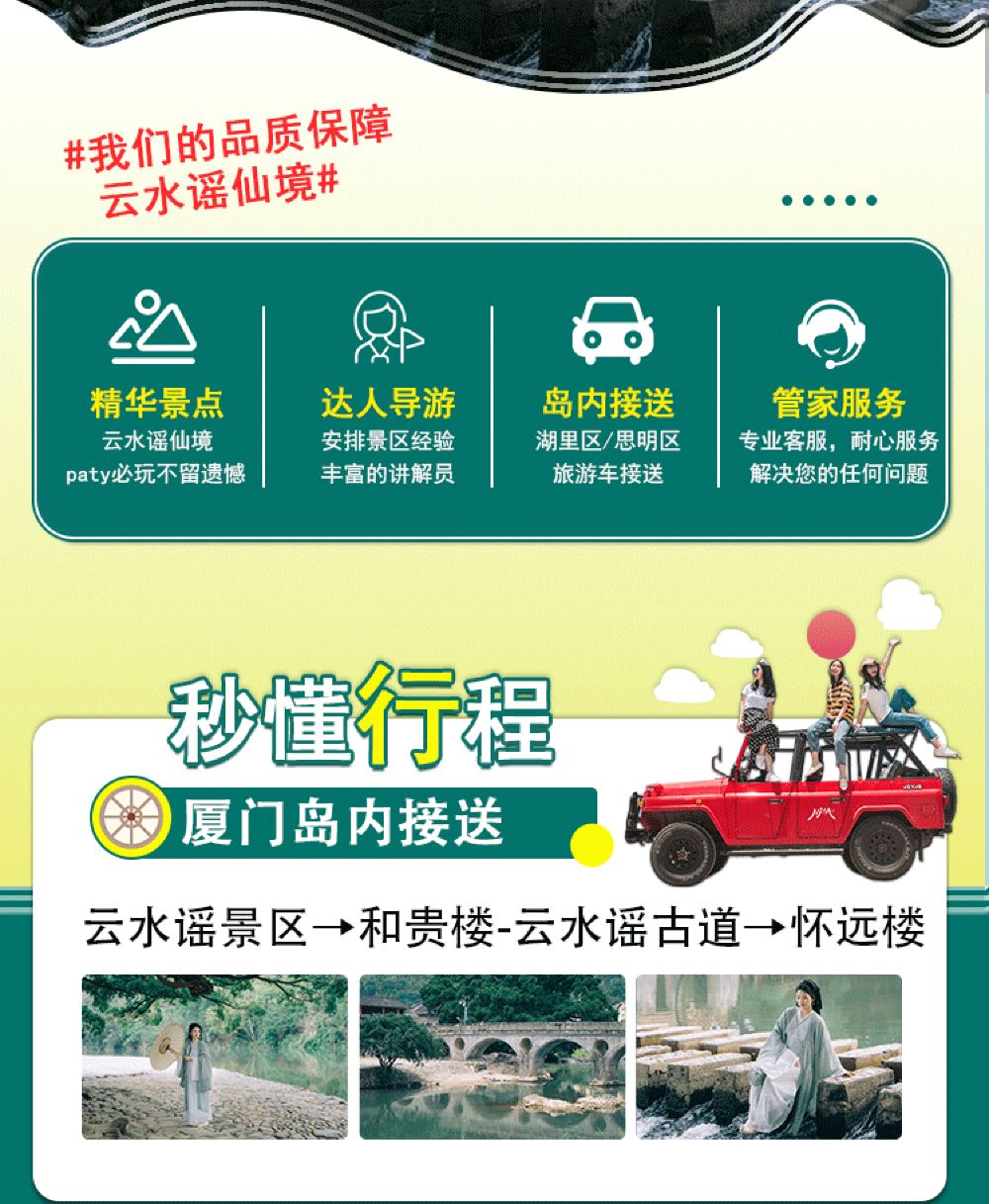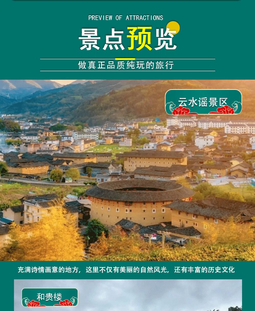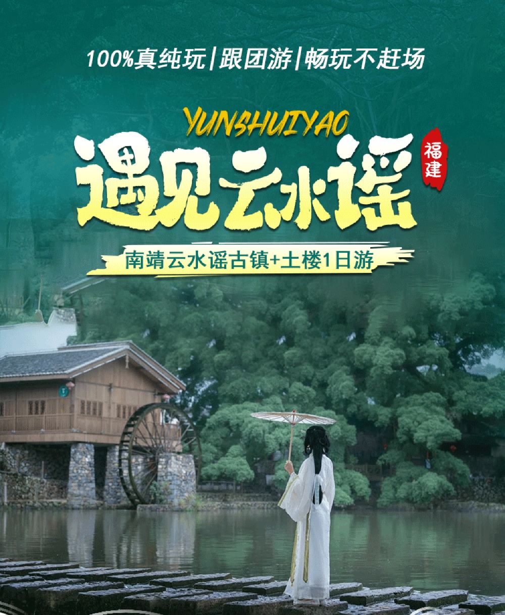 南靖云水谣古镇+福建土楼(南靖)景区一日游【含餐+上门接送】【[古风小镇]慢走在茶马古道石板路,远离城市喧器,见秋水与碧云相逢出。】