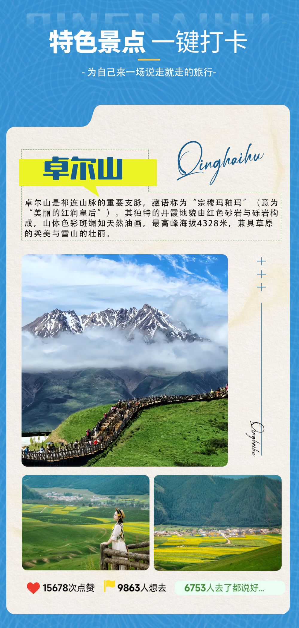 卓尔山+祁连草原+岗什卡一日游【8人团,新车接送,藏服体验】【1【实力保障】我社是集国内、国际,组团、实力旅游公司,青海省的明星企接待于一体的综合业,模范旅行社!】