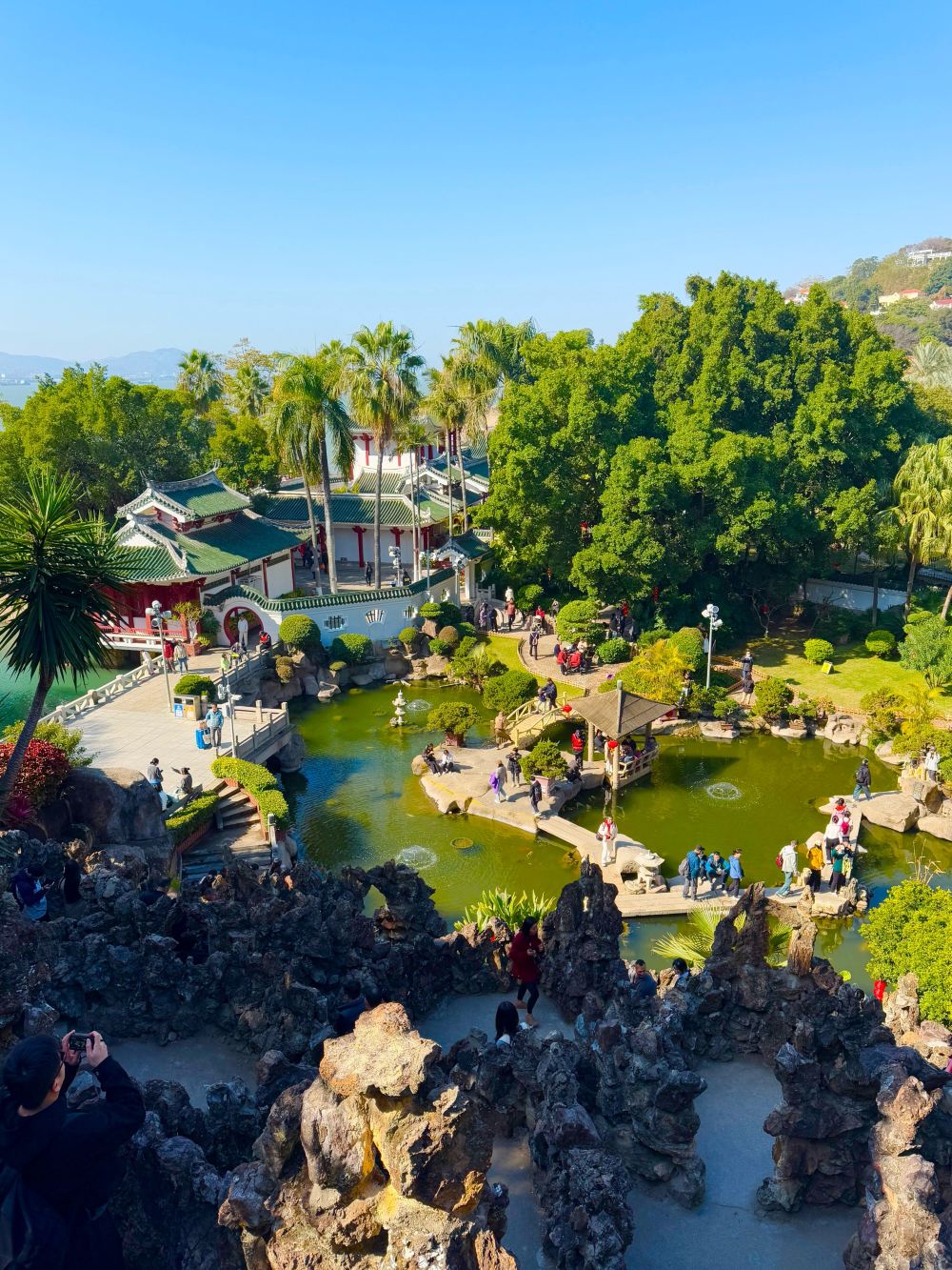 ▲ 菽庄花园,位于鼓浪屿岛南部,建于民国二年(1913年),面向大海,背倚日光岩,原是地方名绅林尔嘉的私人别墅,园主人以他的字“叔臧”的谐音命名花园,1955年,园主亲人将此园献给国家。菽庄花园背倚晃岩,面临大海,东邻观海园,西眺港仔后,全园分为藏海园、补山园两大部分。