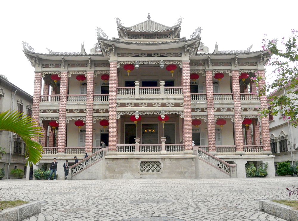 ▲ 番婆楼是福建晋江菲律宾华侨许经权建造的,落成于1927年。该楼色彩鲜丽,造型别致,某些洛可可的特点与中国的传统工艺结合得非常和谐巧妙,这在鼓浪屿别墅群里是不多见的。它风姿绰约,风采不减当年,因被电影导演屡屡选中,曾在这里拍摄《廖仲凯》、《春天里的秋天》、《土楼人家》等多部电影。