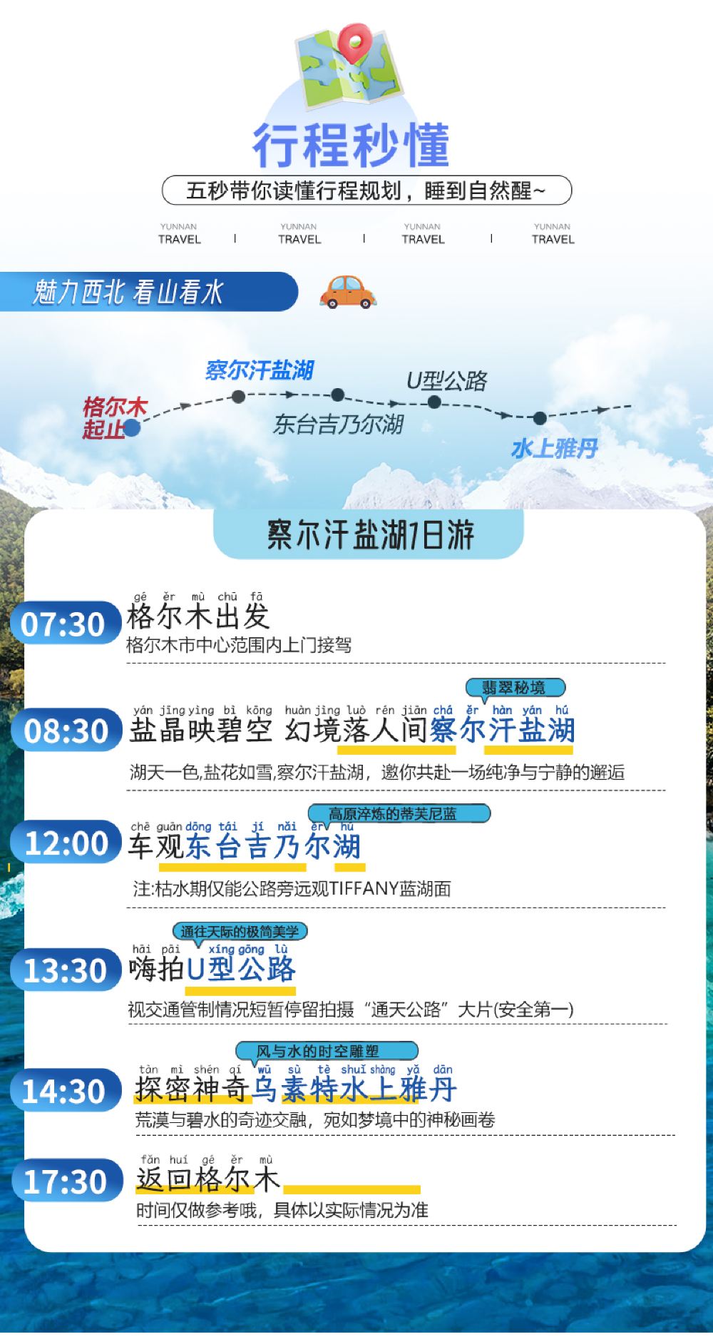 U型公路+察尔汗盐湖+乌素特水上雅丹一日游丨私家包车上门接送【一日串联三大奇观:盐湖“翡翠千岛”、水上雅丹秘境、戈壁公路大片,摄影出片率】