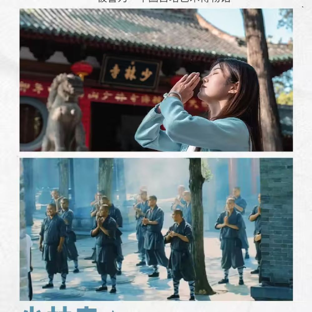 ▲ 少林寺一日游|禅武圣地 静心之旅 【行程亮点】 • 禅宗祖庭深度游览 • 少林功夫表演观赏 • 塔林秘境静思漫步 • 专业讲解全程陪同