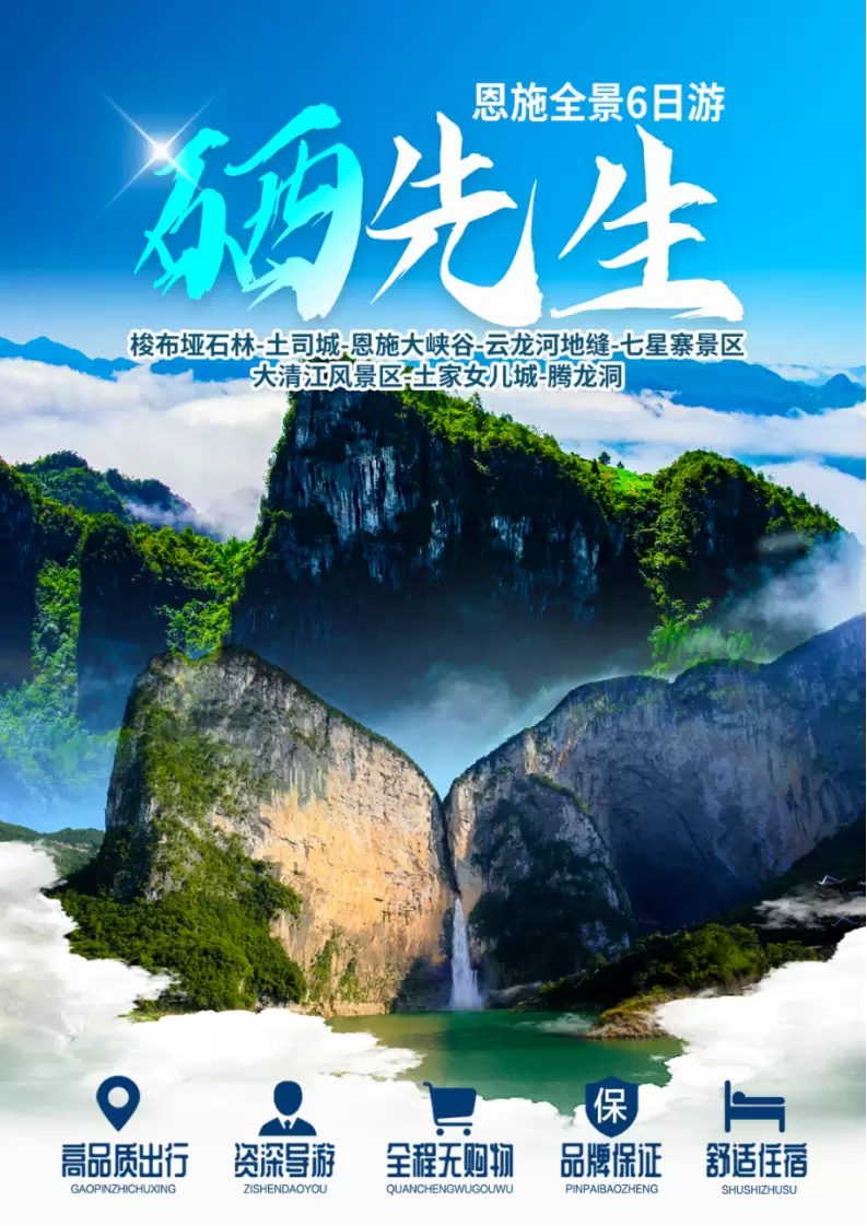 恩施大峡谷+腾龙洞风景区+恩施大清江景区+恩施梭布垭石林景区+恩施土司城+恩施土家女儿城六日游【含5正餐】