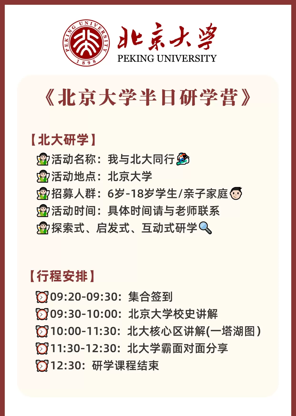 北京大学研学半日游【专业研学老师带队亲子研学体验/深度探访北大校园/入校参观自由行/】