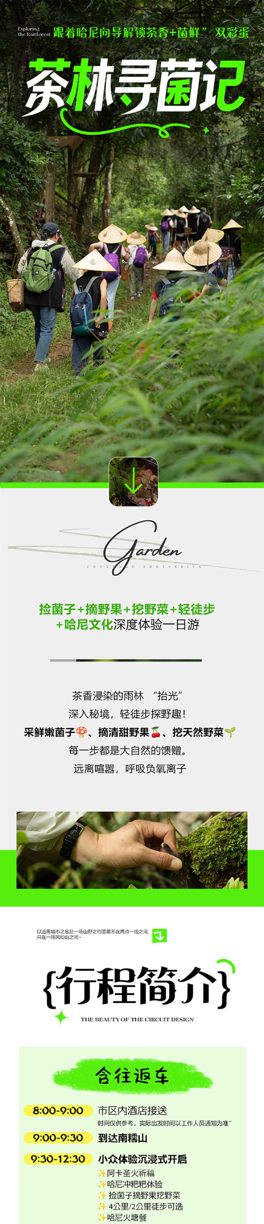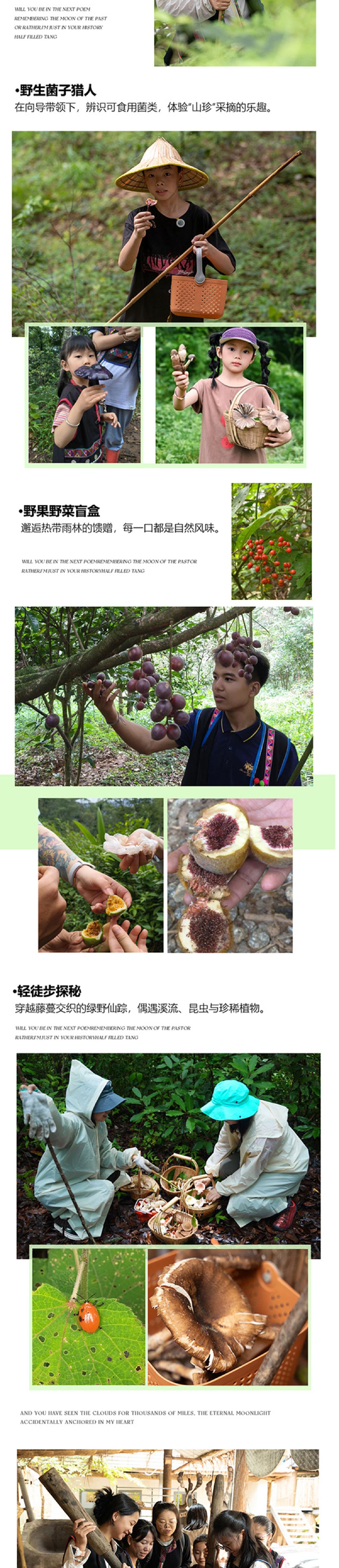 西双版纳捡菌子摘野果挖野菜+轻徒步+哈尼族文化+告庄一日游【原生态探索体验,踩着松软落叶寻找藏匿于树根,感受 “丛林猎人” 般的探索乐趣;】