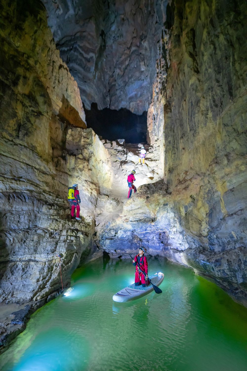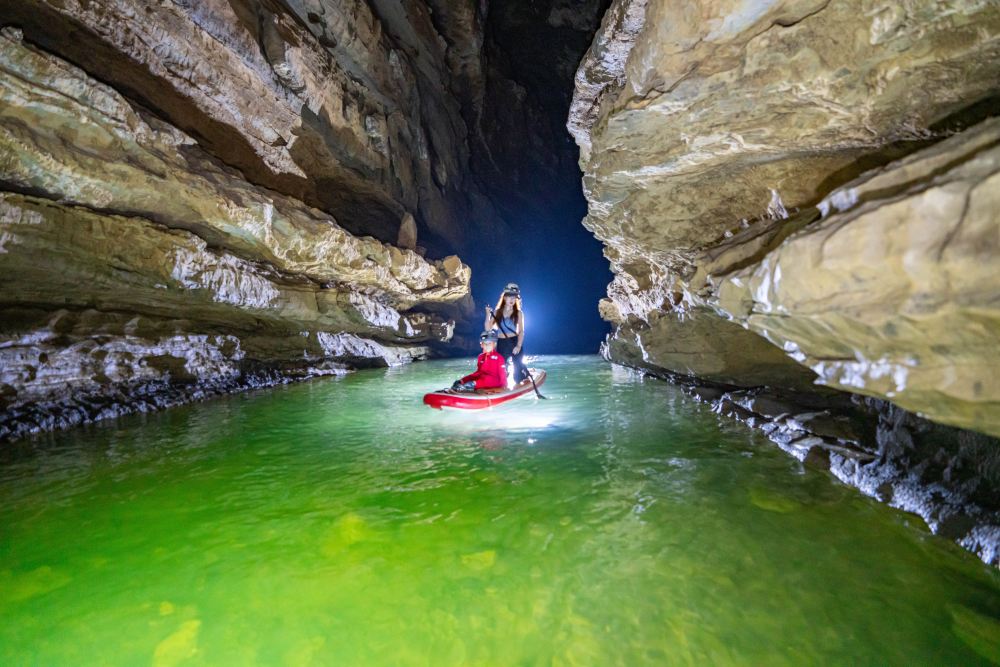 15:30 地下暗河桨板划水:徒步一段时间后,便能到达清澈见底的地下暗河。在这里,你可以登上桨板,在平静的水面上悠然前行。暗河的水清澈透明,能清晰看到河底的沙石与游弋的小鱼。四周静谧无声,只有桨板划水的声音在洞穴内回荡,这种独特的体验,一定会让你沉醉其中。此外,别忘了带上相机,在地下暗河拍出震撼大片,记录下这难得的美景与独特经历。