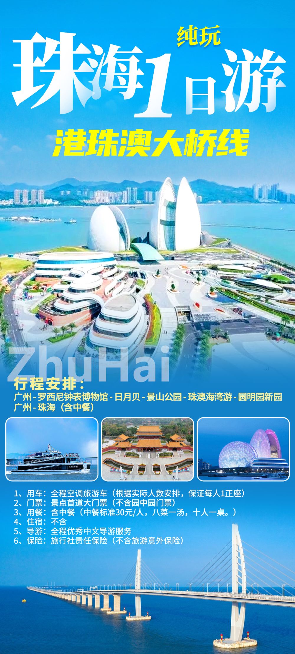 珠海大剧院+珠海渔女+景山公园+珠澳海湾夜游+圆明新园一日游【[天天发团]稳定成团、无需退改、万人销量、千人好评、专业的服务、品质的保证。】