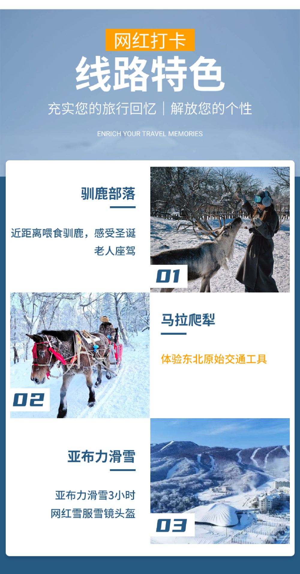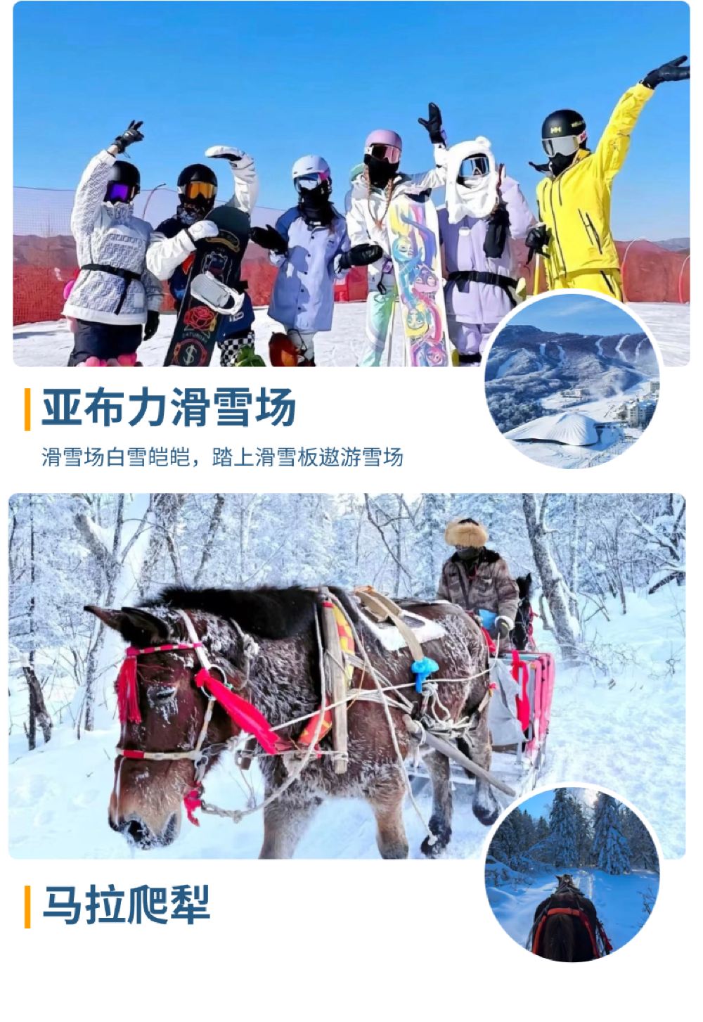 亚布力滑雪一日游【网红雪服+马拉爬犁+驯鹿部落+森林小火车】【[VIP出行]亚布力西站/酒店上门接(亚布力南站/亚布力滑雪旅游度假区内免费接送)】