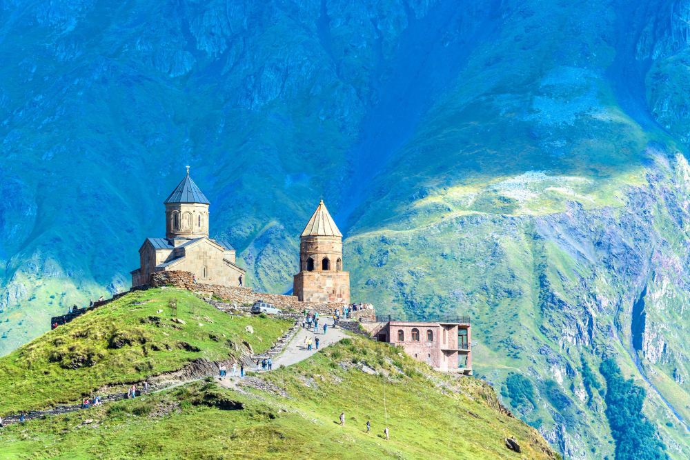 从第比利斯出发,首先探访藏于青山碧水间的阿娜努日要塞,这座古堡是LP封面同款,碉楼与教堂在湖光山色中构成唯美画卷。随后抵达俄格友谊纪念碑,俯瞰深邃山谷,欣赏色彩斑斓的巨型壁画。抵达卡兹别克地区,遥望终年积雪的卡兹别克山,并参观傲立于雪山之巅的斯捷潘茨明达圣三一教堂,它孤寂而神圣的身影,是格鲁吉亚代表性的精神象征。