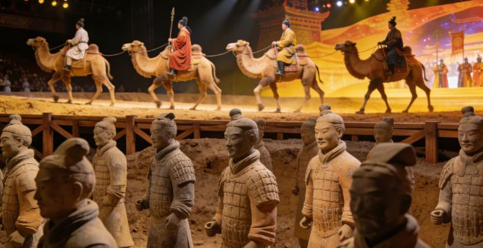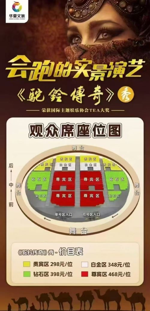 - 1.此组合套票包含《驼铃传奇秀》演出票+兵马俑景区门票(所有项目均可刷身份证入场)。