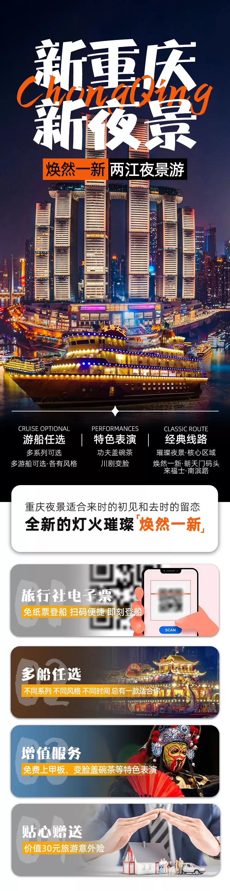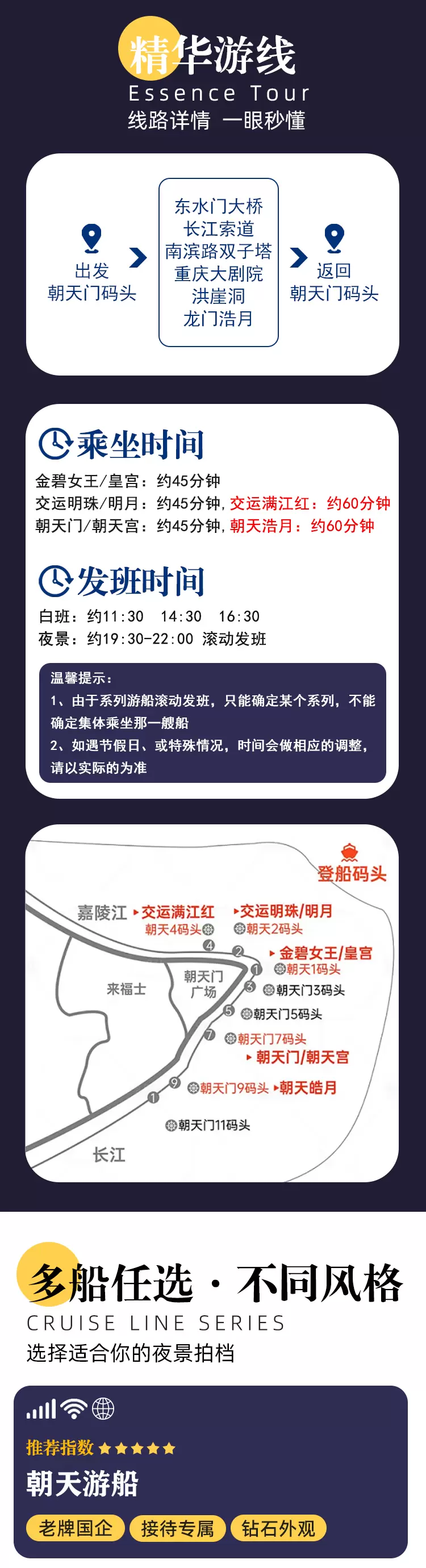 【重庆两江夜景游船票】两江夜游-洪崖洞客运码头/朝天门码头登船