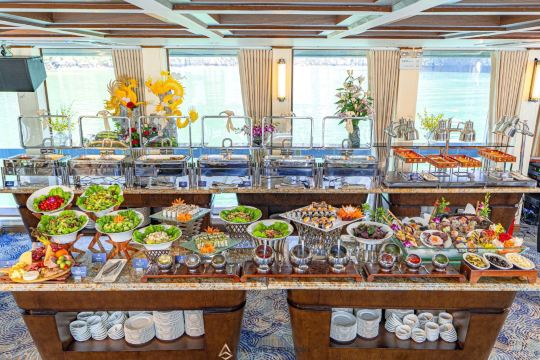 【交响乐号】下龙湾五星豪华邮轮自助餐/下午茶/豪华巴士接送【享用轻食早餐和优质午餐,尽情欣赏壮丽的下龙湾全景】