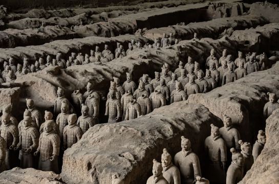 ▲ 秦始皇陵兵马俑一、二、三号坑是世界考古奇迹。一号坑为长方形军阵,规模很大,预计出土6000件兵马俑;二号坑呈曲尺形,是多兵种编队,藏有1300余件陶俑陶马,尽显秦军精锐;三号坑为“凹”字形,是军队指挥部。三坑总面积超2万平方米,藏有大量战车、陶俑与青铜兵器,生动展现秦代军事风貌,兼具历史与艺术价值,是世界文化遗产。