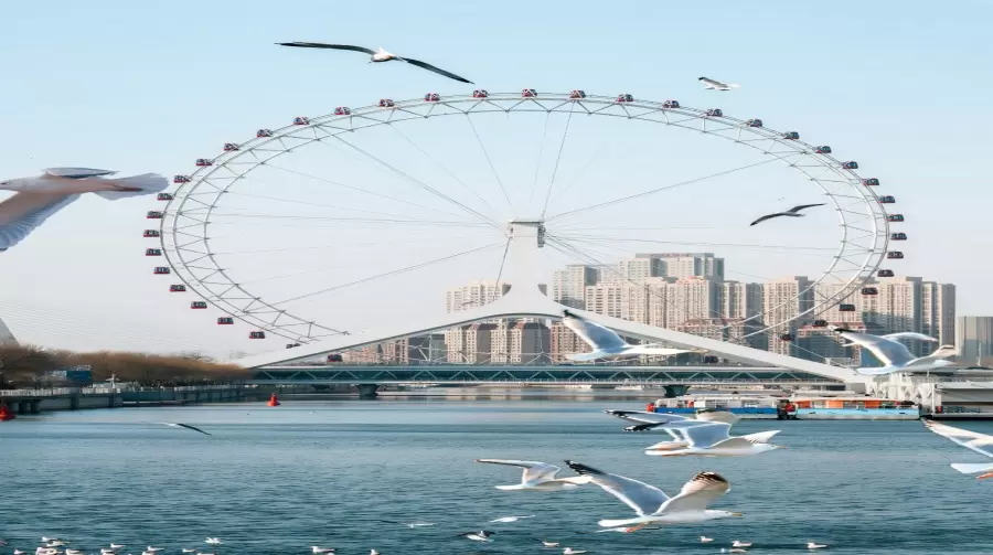 观景效果:摩天轮位于海河之上,从高处俯瞰,可看到海河、城市建筑和街道等,体验天津的独特魅力。