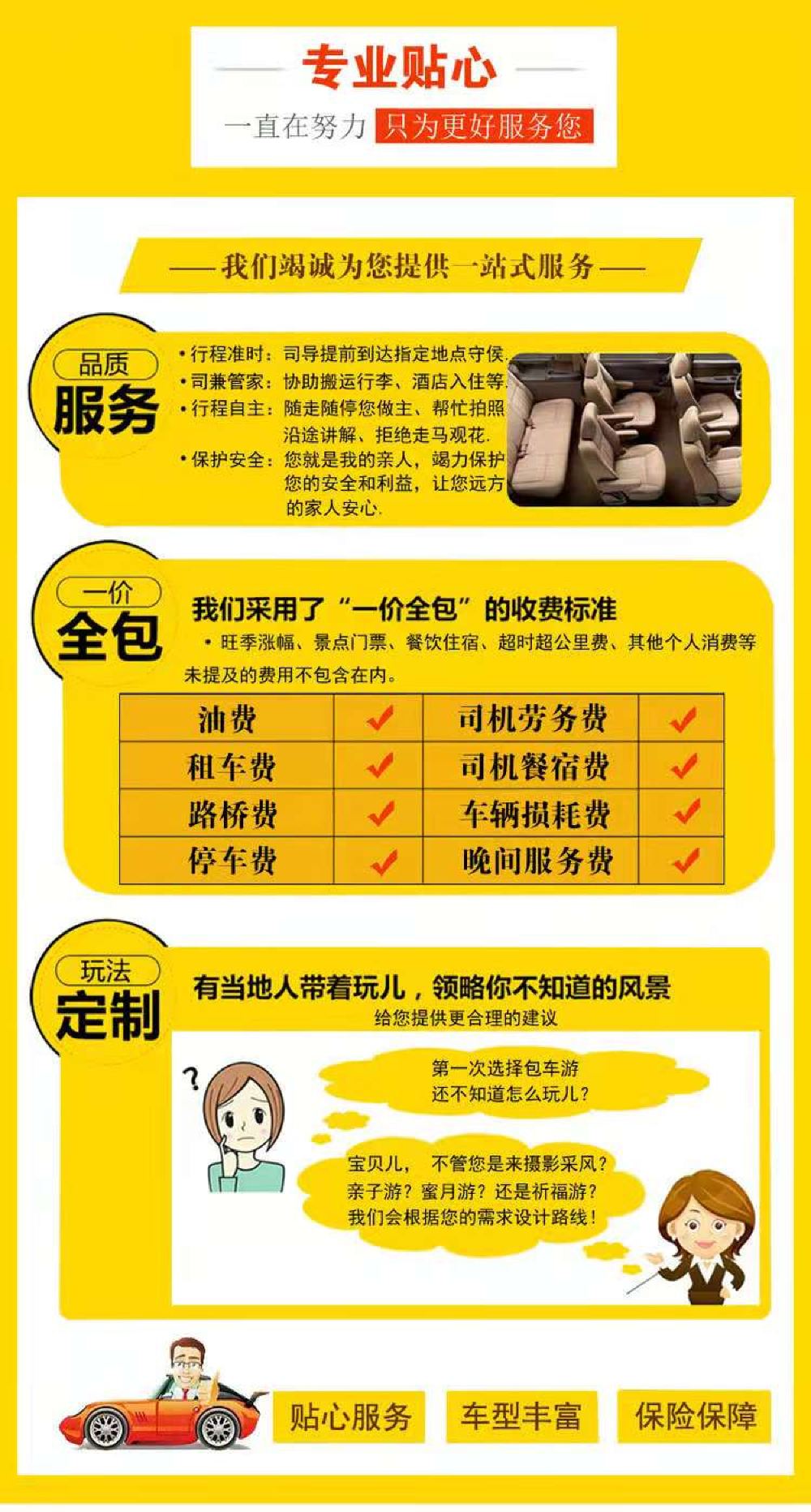 注:本产品为包车服务,2-4人可选一台车。全程不含门票。