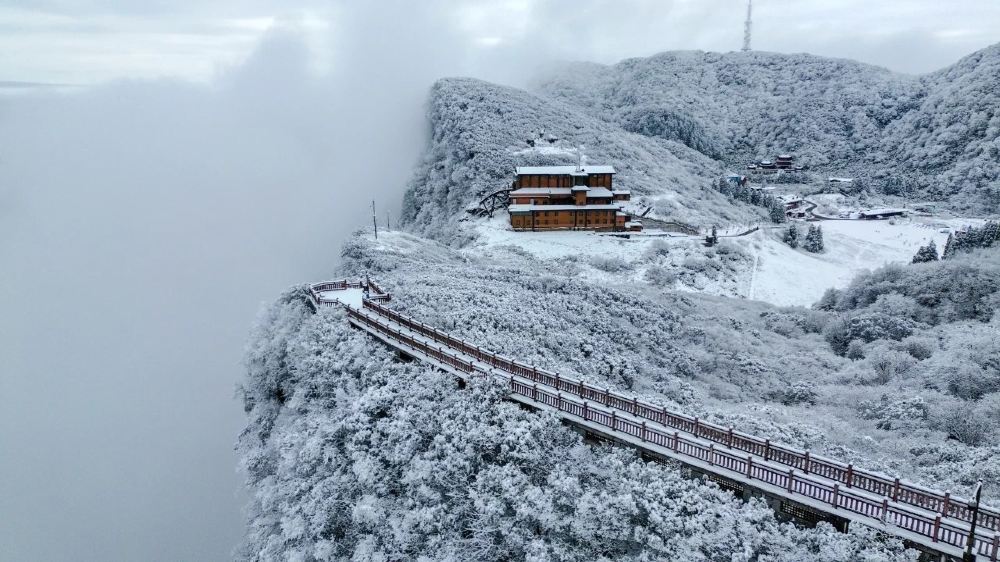 ▲ 金佛山迎来了今冬初雪,雪花纷纷扬扬,是大自然馈赠的装饰品