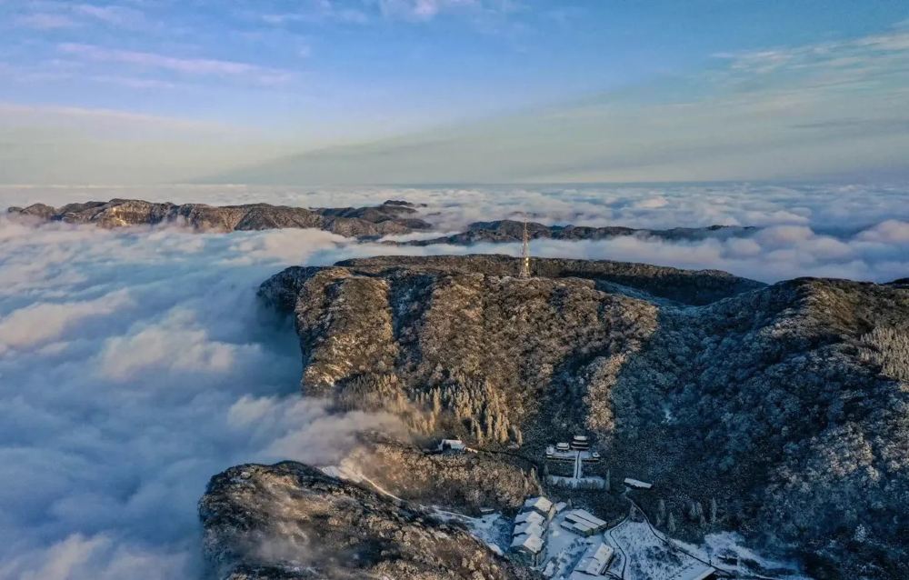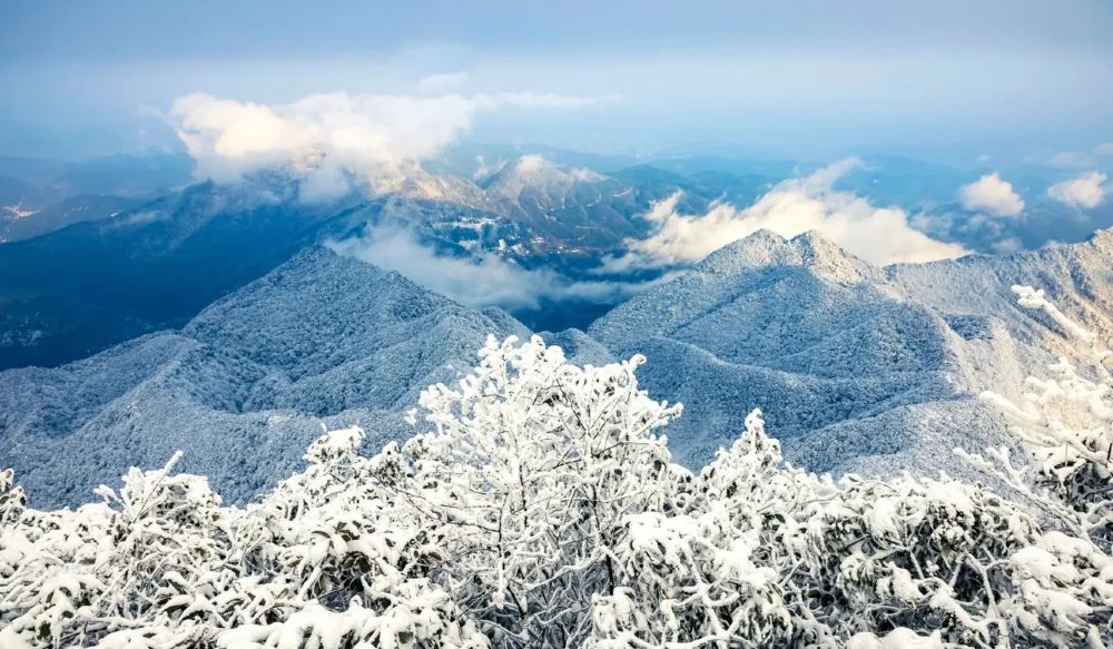▲ 偶遇 “冰挂”“雪凇云海”,山顶云雾缭绕时,仿佛置身仙境,这种南方罕见的冰雪美景,一次就能看够