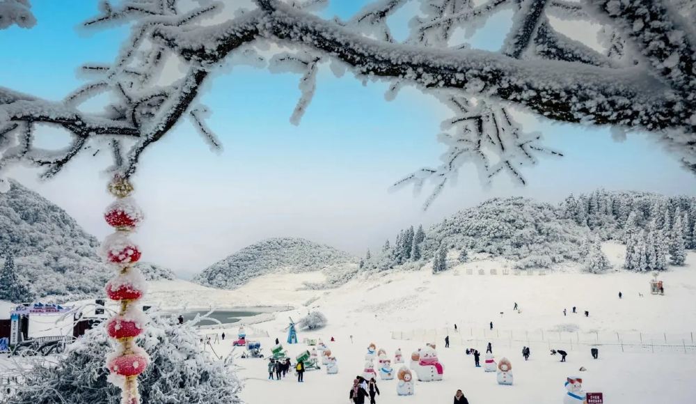 ▲ 金佛山的视野开阔,在这里我们可以欣赏到大面积的雪景和雾凇,还能体验滑雪、雪上飞碟等项目