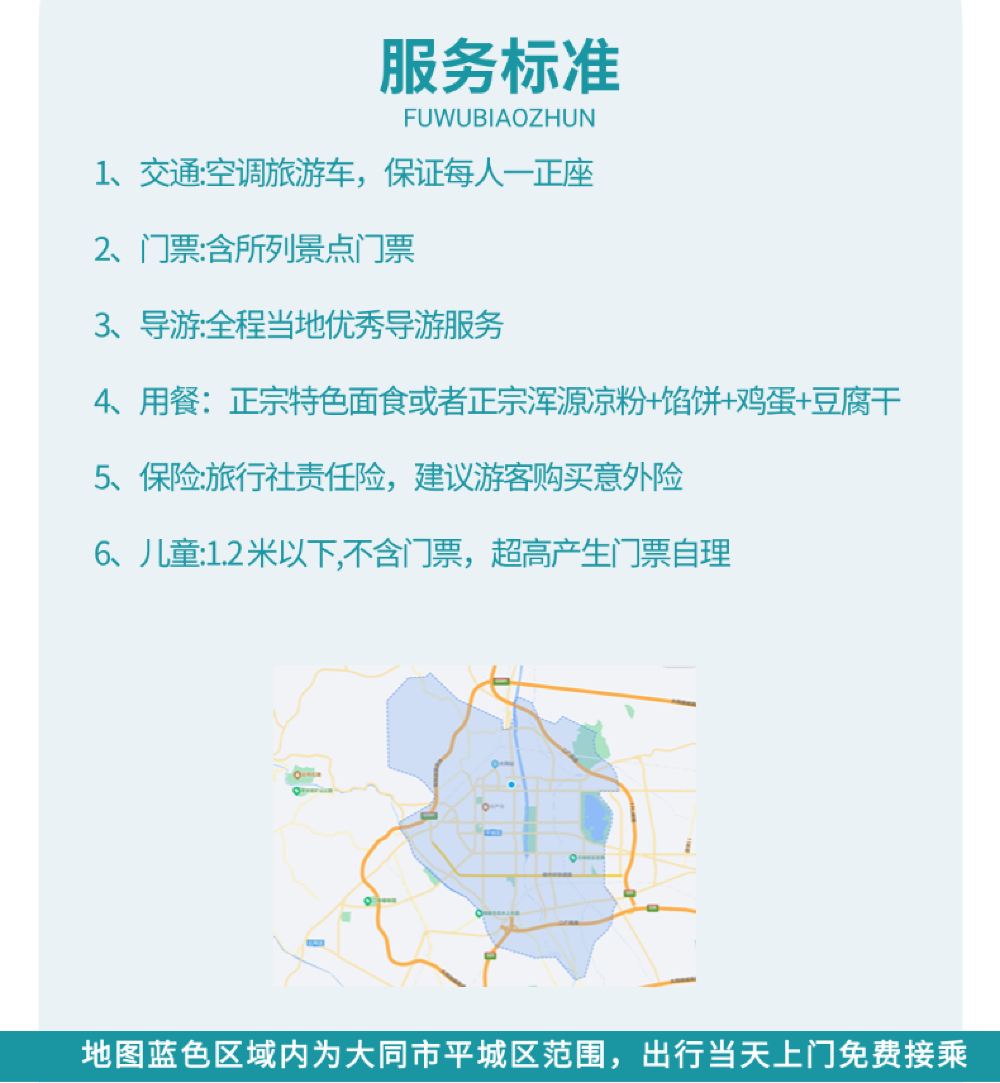 5、悬空寺需乘坐摆渡车到达景区内,此项目为自费必消。(自费20元/人)讲解耳麦自愿自费20元/人(全天租用)