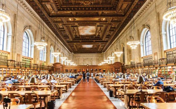 ▲ 纽约公共图书馆——新古典主义建筑,玫瑰主阅览室穹顶壁画震撼,多部电影取景地,免费开放。