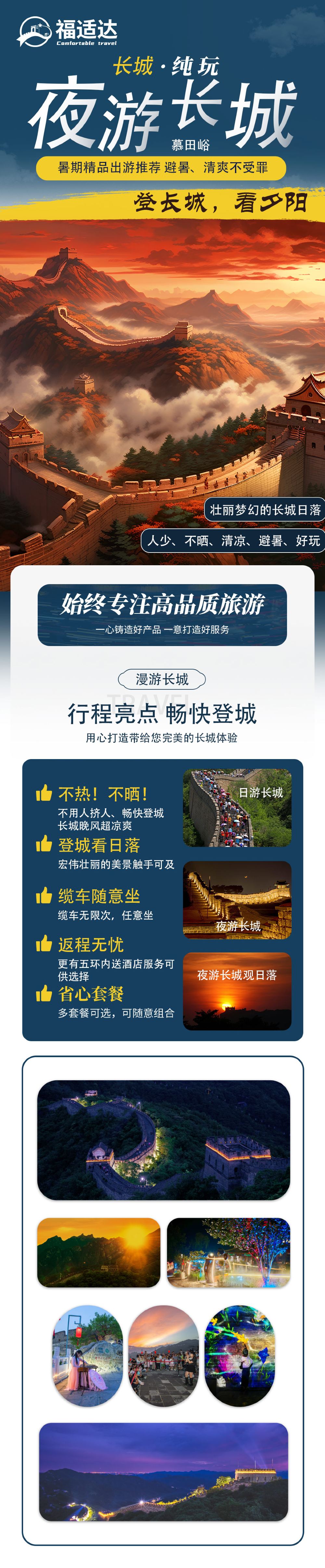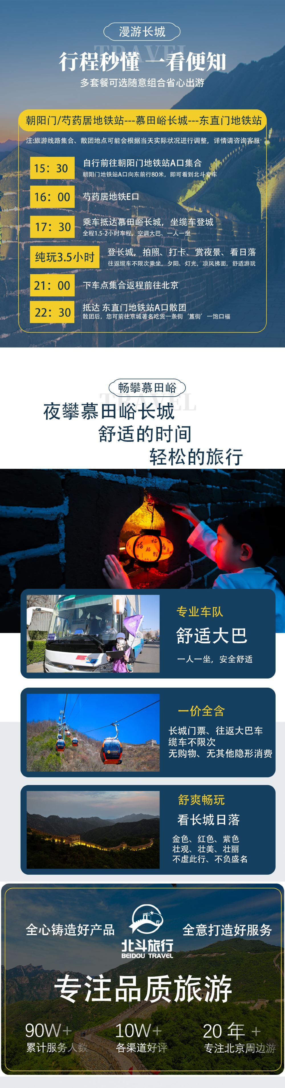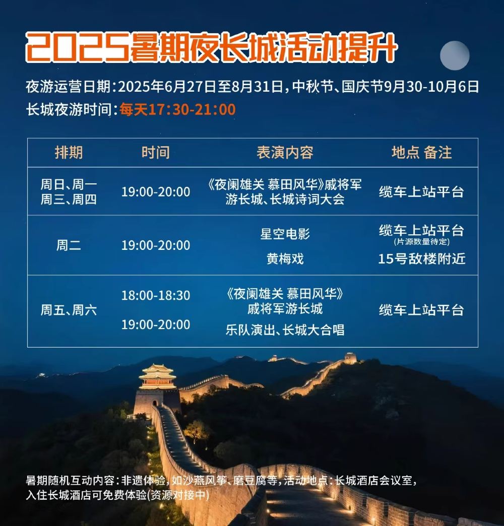 北京慕田峪长城一日夜游| 双人下单赠包◆当天可定◆缆车免费【避暑防晒,看日落,赏灯光秀,不限次数乘坐缆车】