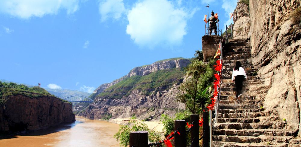 后游览【龙门大桥】这里自古以来是兵家必争之地,也是鲤鱼跃龙门的地方,有大禹治水的故事,有禹门抗日烈士纪念碑,更有横跨黄河两岸,晋陕两省的龙门铁索桥。