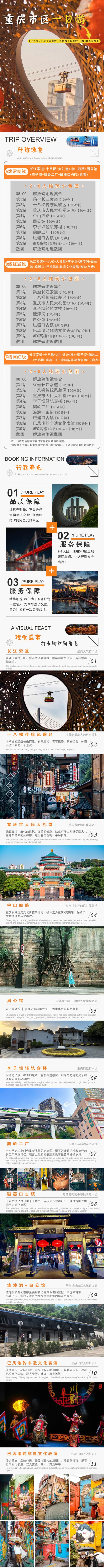 长江索道+十八梯传统风貌区+重庆市人民大礼堂(外观)+李子坝轻轨穿楼+渣滓洞+白公馆+磁器口+巴渝风韵非遗文化表演+WFC(自费)