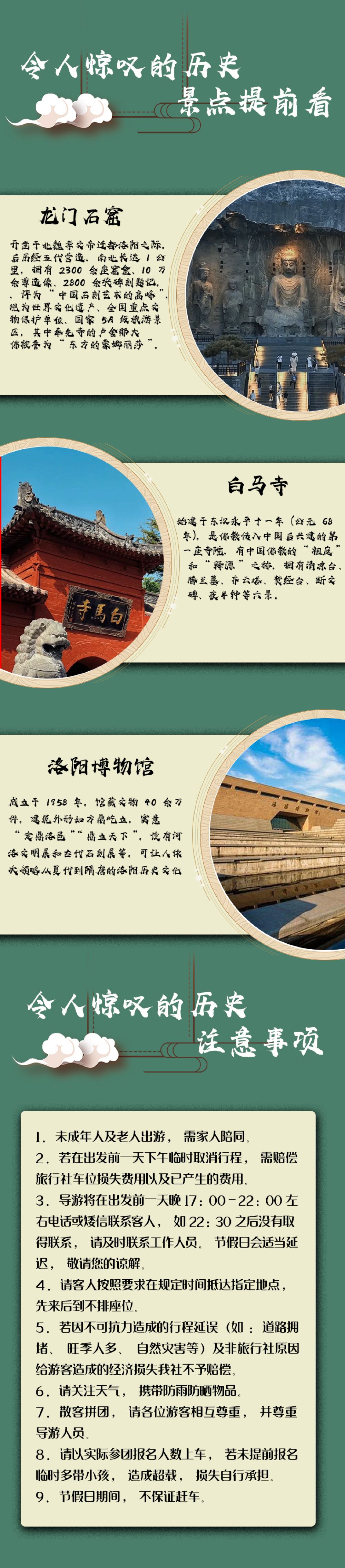 2.洛阳博物馆我社代为预约,预约时间统一为下午两点场,如需更换场次请提前告知客服!